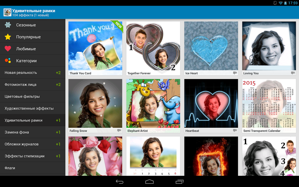 Приложение предоставляет в распоряжение пользователей более 570 различных фотоэффектов, которые позволяют создавать оригинальные аватарки, заставки для телефона, виртуальные открытки, анимированные картинки и смешные фотоприколы.