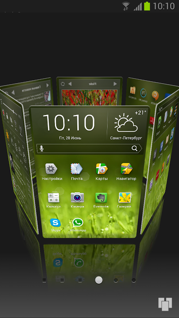 Яндекс.Shell – наглядный, удобный интерфейс, который позволяет приятнее и проще работать с устройством. Для настройки экрана потребуется немного времени. Интерфейс может распределять виджеты и программы по экранам автоматически. Трехмерная карусель позволяет переключаться между экранами.