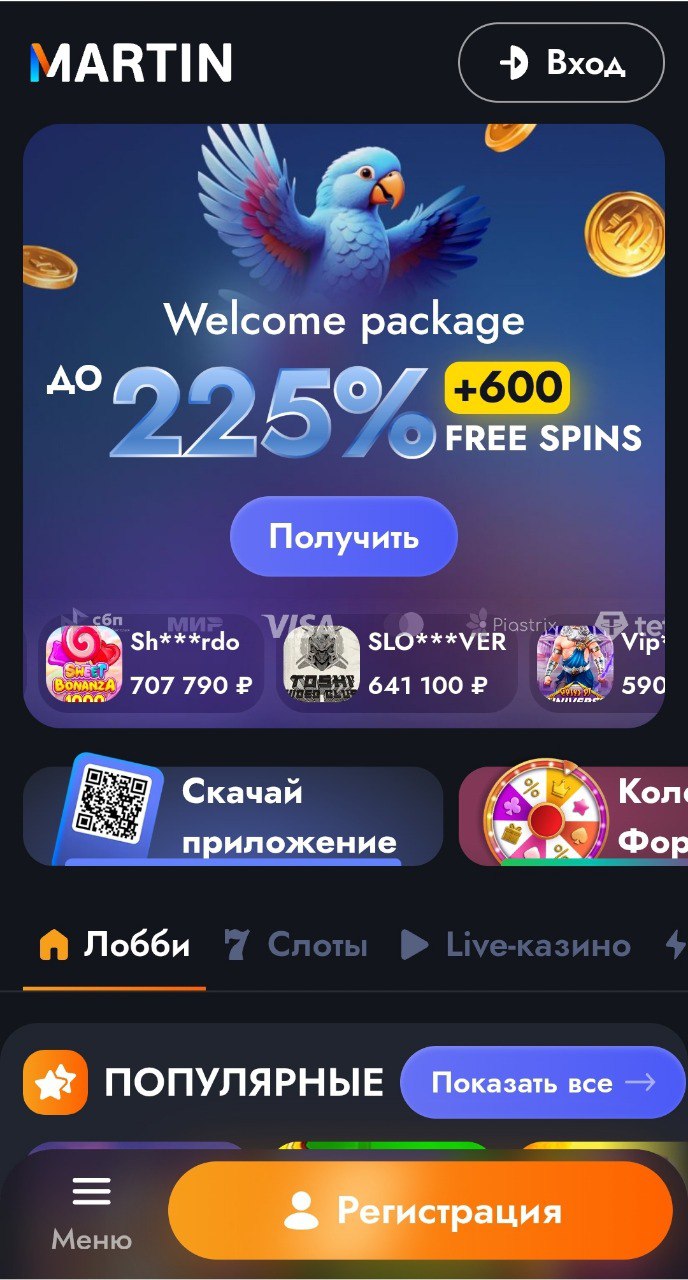 Martin Casino – новый бренд онлайн казино, услуги которого доступны на любых устройствах. Загрузите мобильное приложение на Android или iOS, либо воспользуйтесь адаптивной версией сайта через браузер. Вам открывается огромный ассортимент игр, бонусные предложения, круглосуточная поддержка и многое другое..