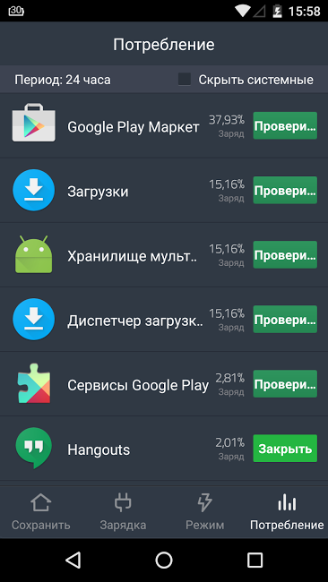 Программа позволяет быстро отключать ненужные приложения, которые расходуют энергию аккумулятора, тем самым значительно продлевая время работы устройства. При этом работа закрываемых приложений прекращается при выключенном экране устройства, что обеспечивает дополнительную экономию заряда батареи.