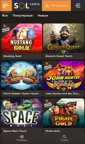 Огромный ассортимент автоматов. Гэмблер, решивший установить казино «SOL» на Андроид, сможет насладиться сотнями качественных слотов. В казино вас ждут продукты именитых производителей, среди которых: Netent, Amatic, Microgaming, EGT, Booming Games, Igrosoft и многие другие.